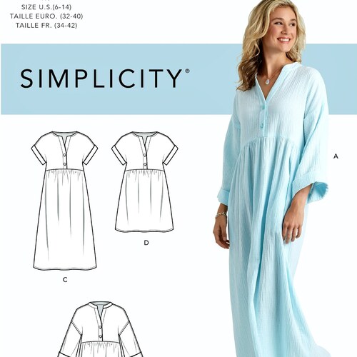 Simplicity Easy Sewing Pattern 5628 Caftan Maxi Short Etsy